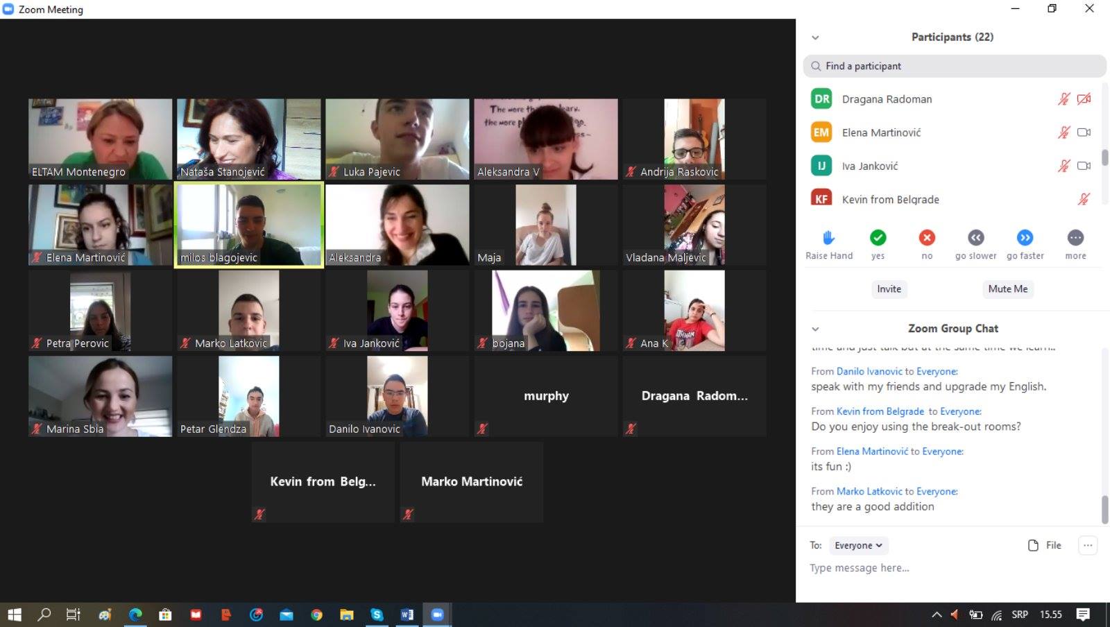 Online session held on June 11, 2020 was dedicated to Flag Day, the day that commemorates the adoption of the Stars and Stripes as the official flag of the United States. Commemorating the holiday opened a variety of related topics covered during the lesson by the special guest Consular Officer Mr. Michael Murphy who introduced the students with the history of the holiday, its symbolic meaning as well as values it gets across and proper display of the flag. He gave his best to show a real collection of flags encouraging students to discuss the origin and values. He also gave students an incentive to imagine the design of their own flag and to say why it should look like that, aiming at unique values every flag represents. Students were engaged in discussion which was broadened by polling questions, commented on by the guest. Divided into groups with a representative, students also introduced the guest with National symbols of Montenegro, commenting on similarities and differences between the U.S. flag and Montenegrin flag.